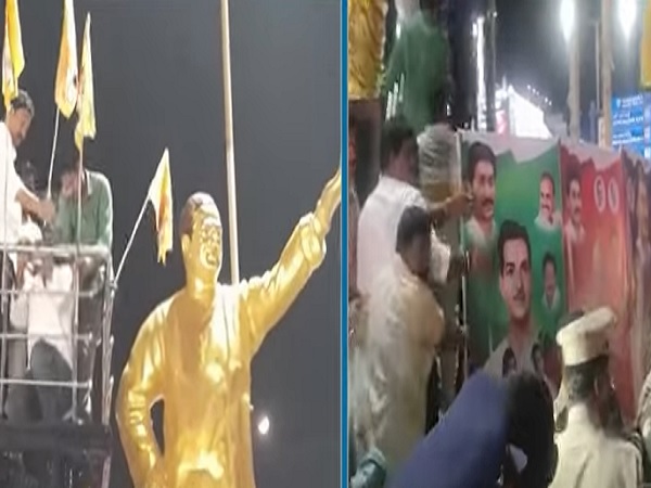 బెజవాడలో ఎన్టీఆర్ విగ్రహం చుట్టూ వైకాపా ఫ్లెక్సీలు కలకలం రేపాయి. పటమట సెంటర్లో ఎన్టీఆర్ విగ్రహం చుట్టూ వైకాపా ఫ్లెక్సీల ఏర్పాటు చేయడంతో వివాదం మొదలైంది. ఎన్టీఆర్, సీఎం జగన్, మాజీ మంత్రి దేవినేని నెహ్రూ, దేవినేని అవినాష్ ఫోటోలతో ఫ్లెక్సీలు ఏర్పాటు చేశారు.