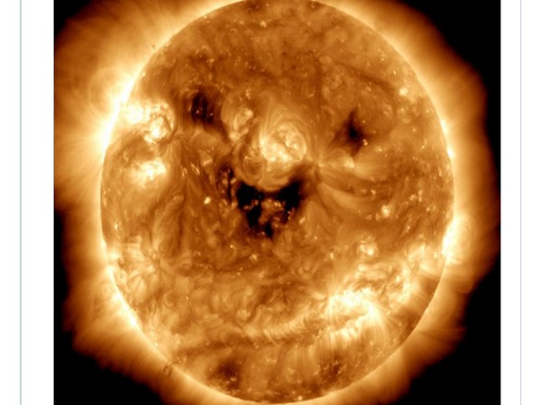 నాసాకు చెందిన సోలార్ డైనమిక్స్ అబ్జర్వేటరీ సూర్యుడిని 'నవ్వుతూ' చూసిందని నాసా ఒక ట్వీట్లో పేర్కొంది. అతినీలలోహిత కాంతిలో చూసినప్పుడు సూర్యునిపై ఉన్న ఈ చీకటి మచ్చలను కరోనల్ హోల్స్ అంటారు.