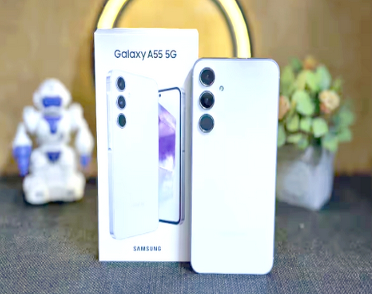 Samsung Galaxy A55 5G ఫోన్ 6.6-అంగుళాల పూర్తి-HD + సూపర్ AMOLED డిస్ప్లేను కలిగి ఉంది.
