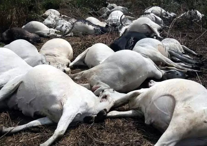 తెలంగాణా రాష్ట్రంలో విషాదం జరిగింది. అడవిలో మేతకు వెళ్ళిన అవుల్లో 140 ఆవులు విగతజీవులుగా మారాయి. మరికొన్ని ఆవుల ఆచూకీ తెలియరాలేదు. ఈ ఘటన రాష్ట్రంలోని రాజన్న సిరిసిల్ల జిల్లాలో చోటుచేసుకుంది. జిల్లాలోని వీర్నపల్లి మండలం మద్దిమల్ల, రుద్రంగి మండలం దేగావత్తండాలో శుక్రవారం జరిగిన ఈ ఘటన స్థానికంగా ప్రతి ఒక్కరినీ కలిసివేస్తుంది.