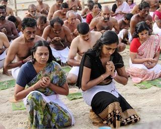 పుష్కరాల్లో హంసలదీవి వద్ద కృష్ణమ్మలో స్నానం చేసిన గంగ
